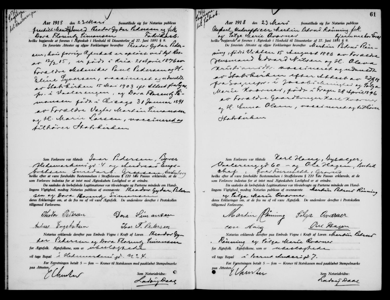 (Alder 38 år) Ekteskap 23 Mar 1918 Byfogden i Oslo